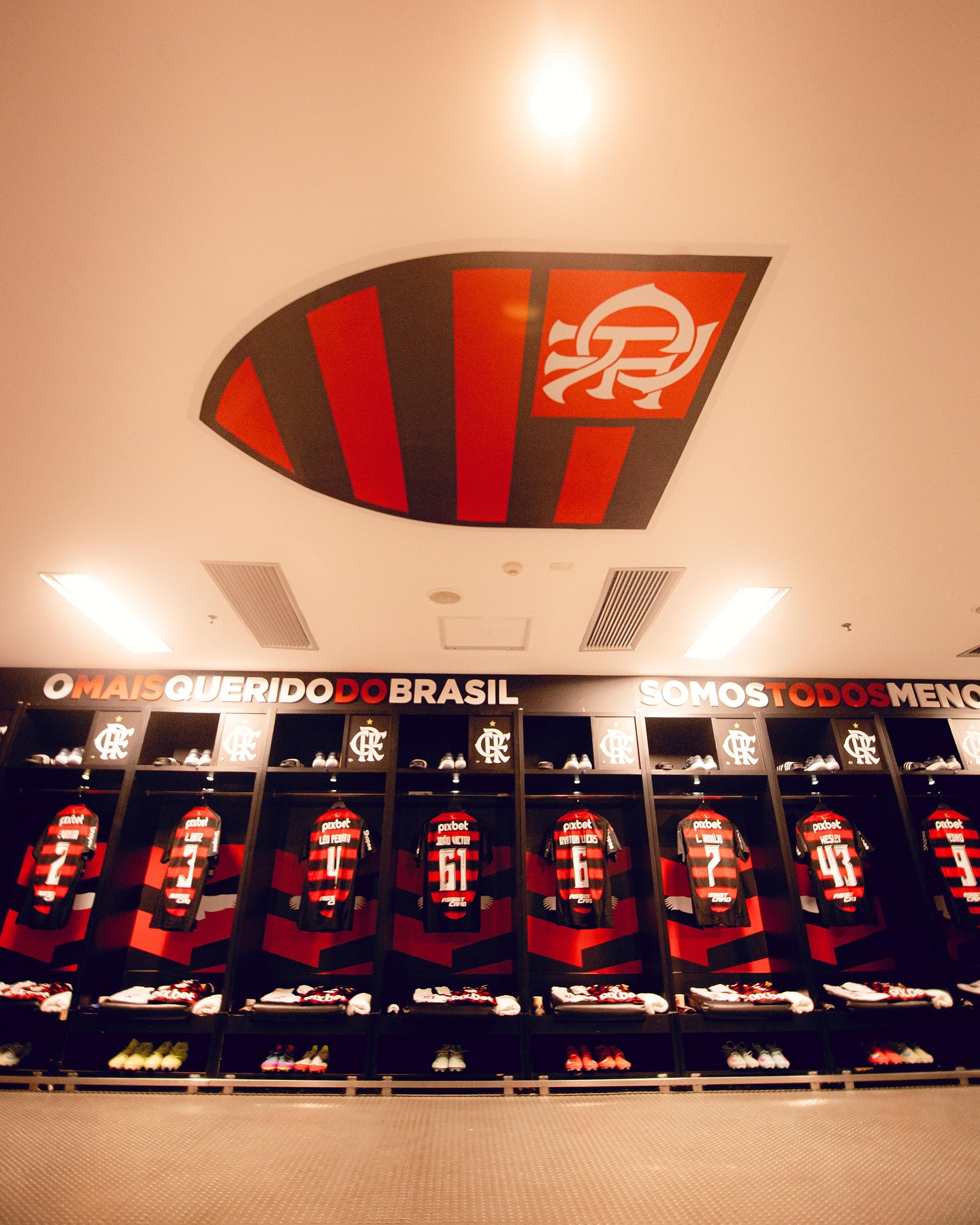 A rouparia deixou #TudoPronto no vestiário do Mengão pro clássico de logo mais! Hoje, o uniforme de aquecimento entra em campo com um propósito especial: os jogadores carregam no Manto Rubro-Negro os laços do Maio Amarelo, campanha que conscientiza sobre a importância da segurança no trânsito.