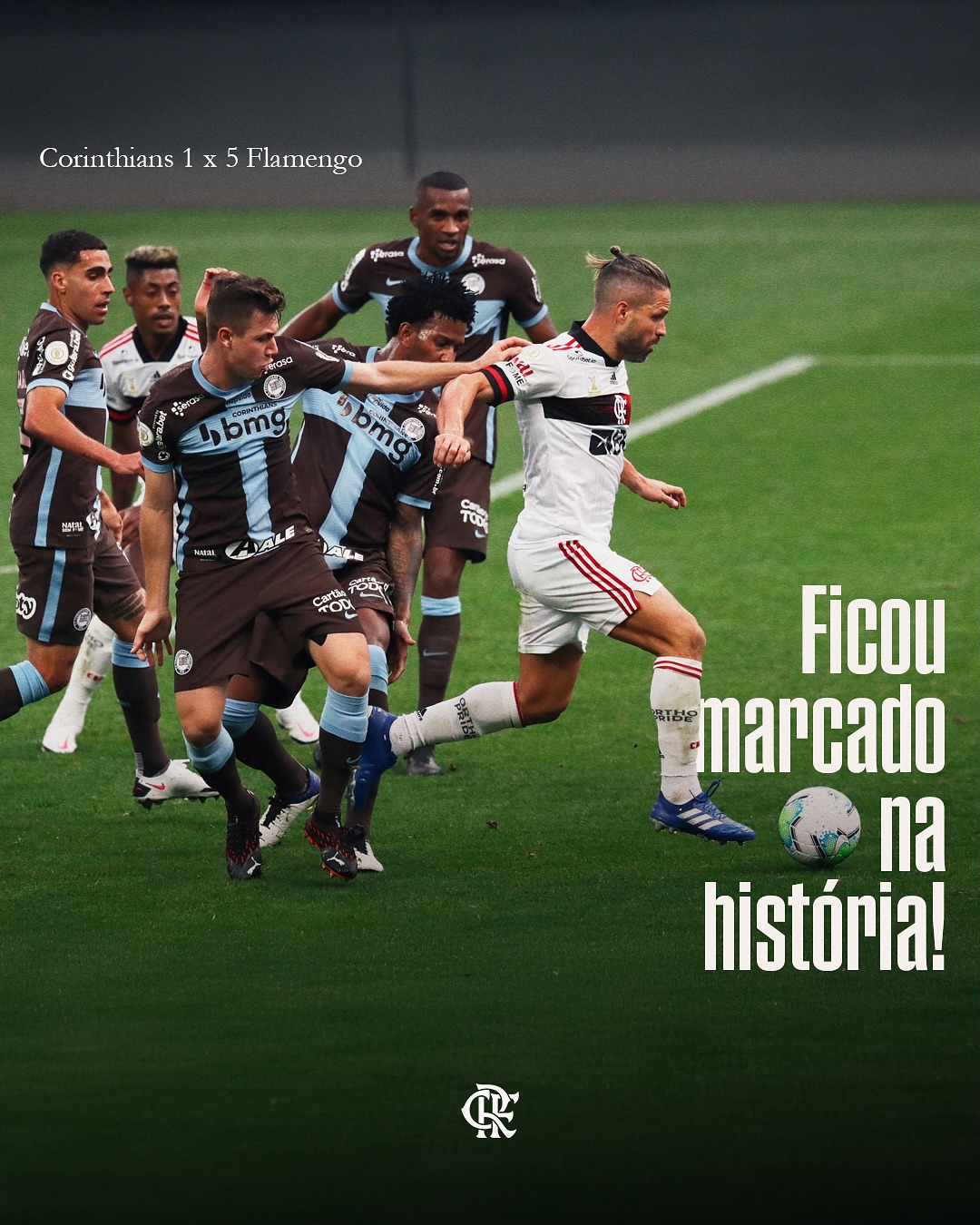 E um jogo que ficou marcado na história do confronto foi o 5 a 1 do Mengão na casa do rival, em 2020.