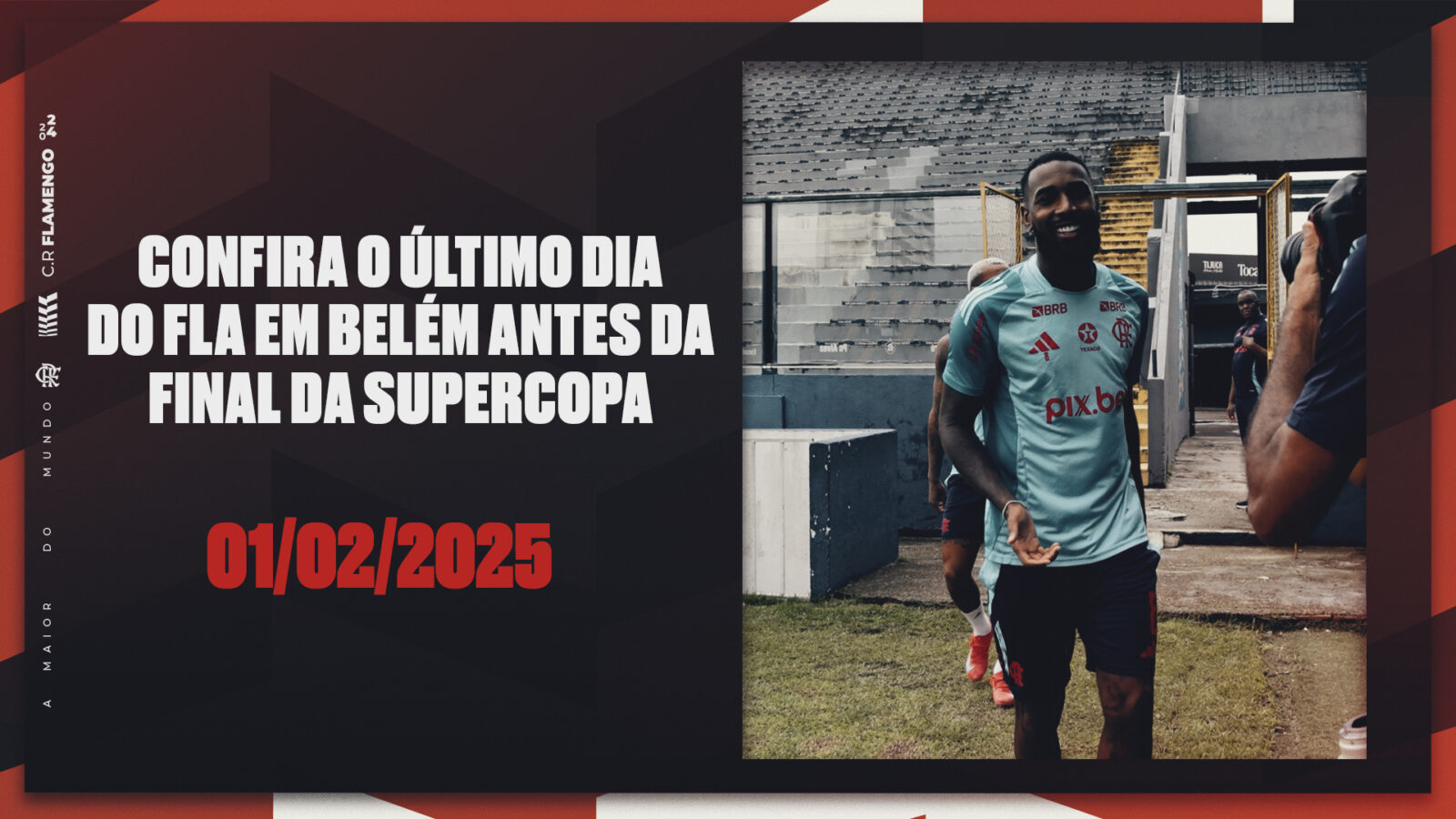 É amanhã, Nação! O Flamengo encerrou a preparação para a decisão da Supercopa do Brasil contra o Botafogo, que acontecerá neste domingo (2), no Estádio Mangueirão, em Belém, no Pará, às 16h. Após a atividade, o atacante Everton Cebolinha concedeu entrevista coletiva para falar sobre seu retorno aos gramados e suas expectativas para a grande final. Acompanhe como foi o dia do Mengão.