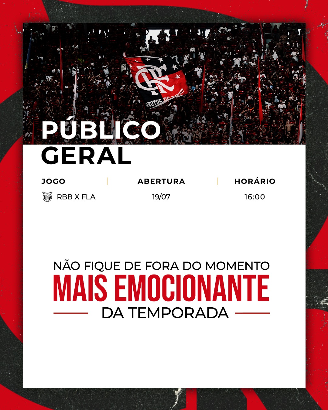 Confira as ondas de abertura para garantir o seu ingresso e jogar junto com o Mengão em Bragança: ingressos.flamengo.com.br