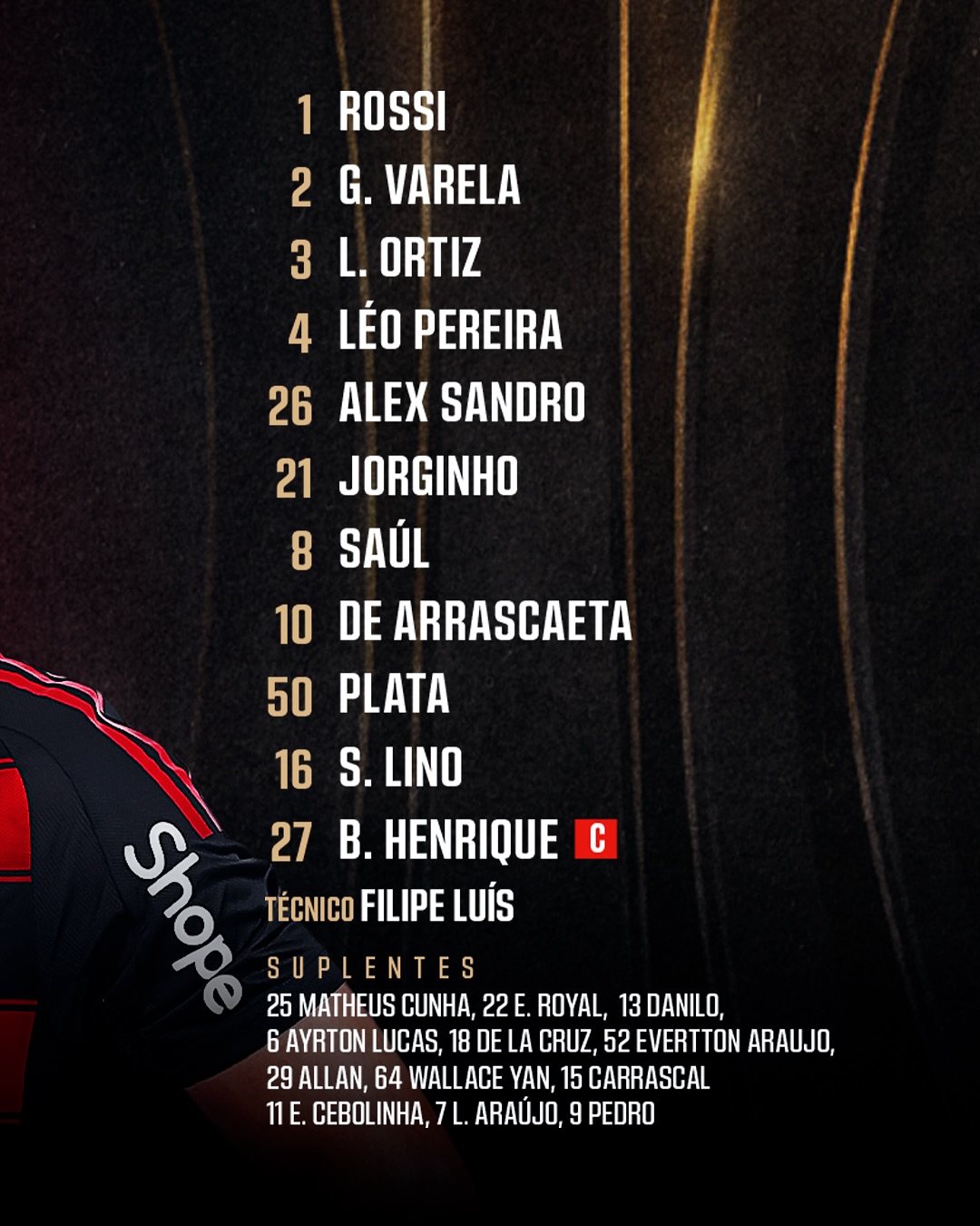 NOSSO TIME É A GENTE EM CAMPO! Confira a escalação do Mengão para enfrentar o Internacional, pela @libertadores!