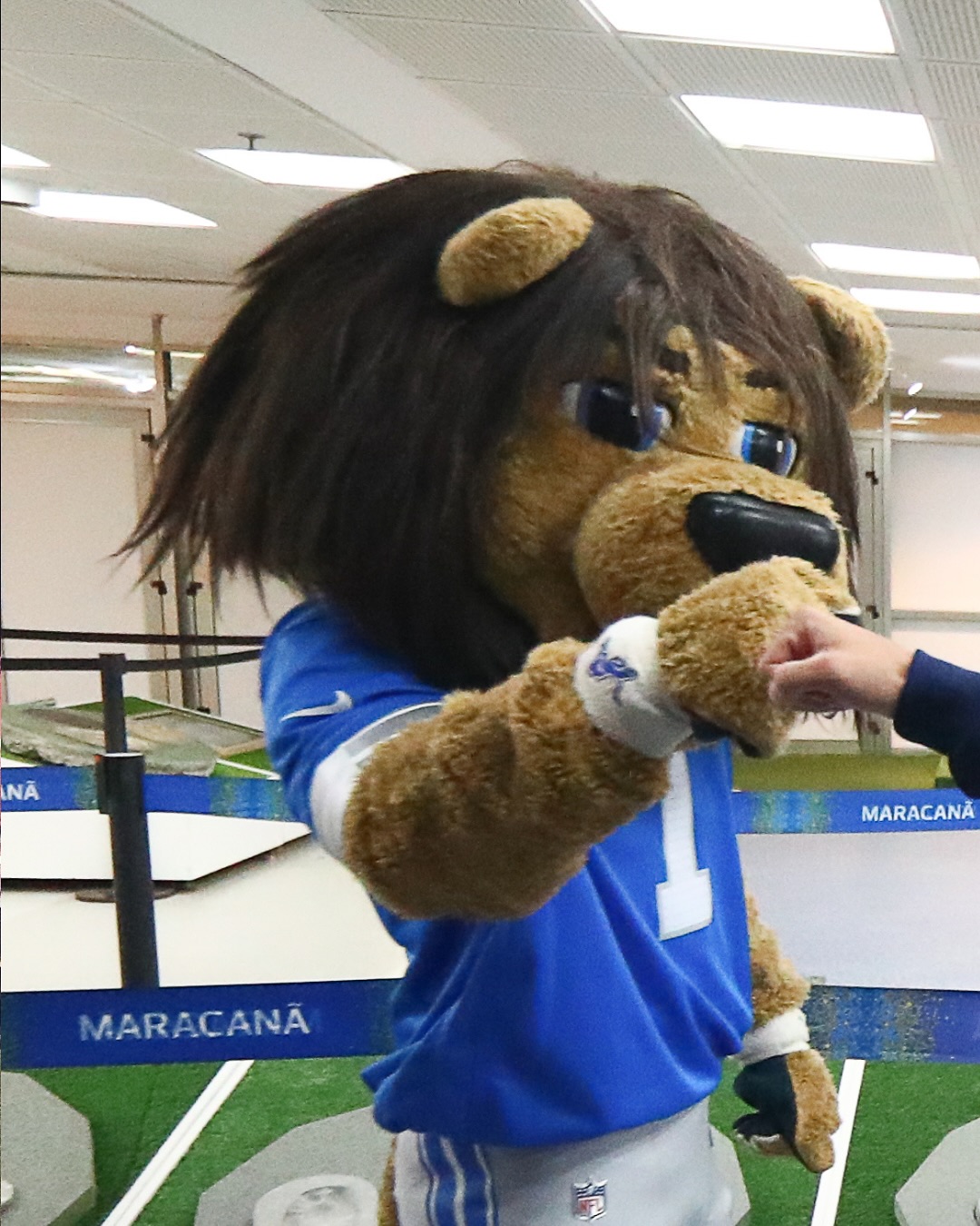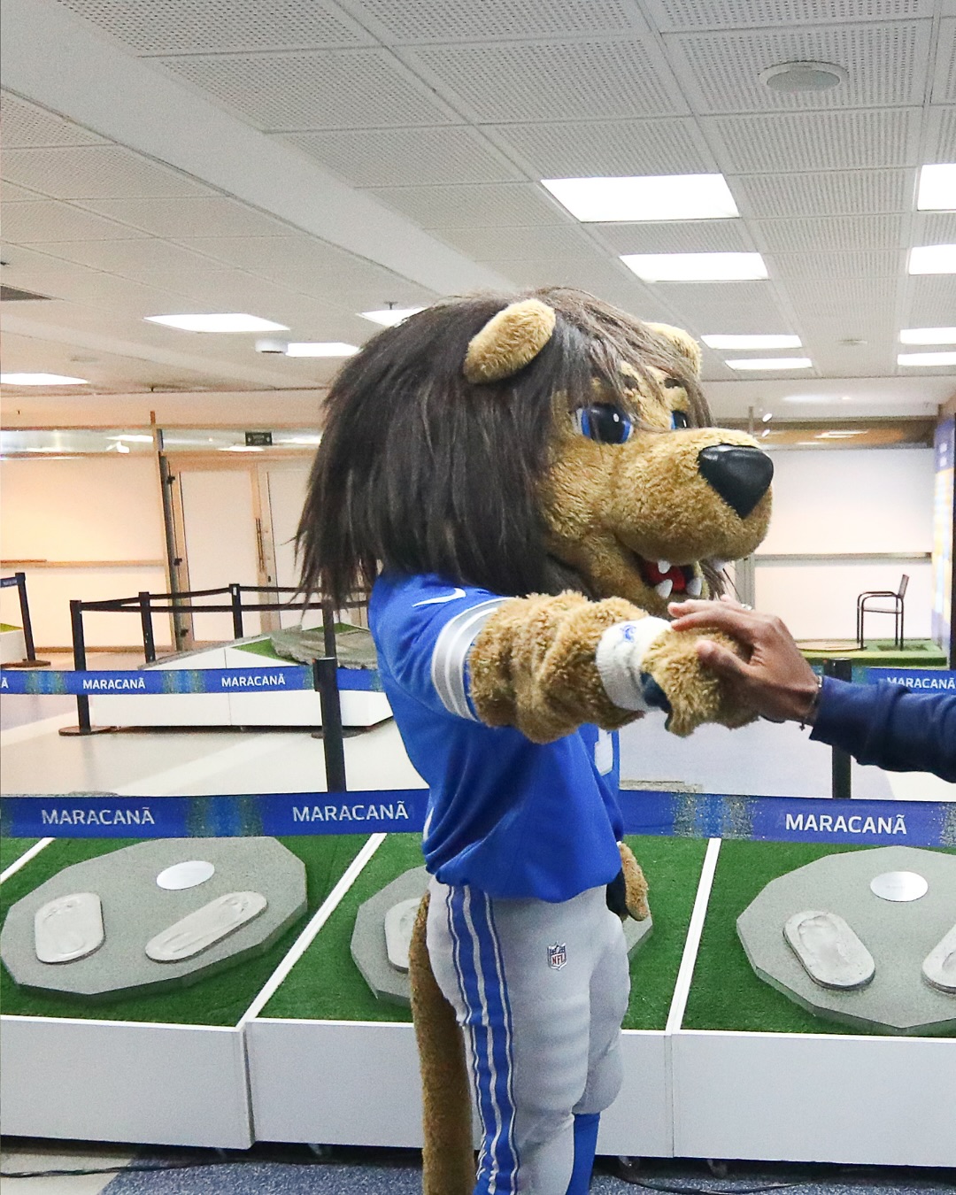 Our Urubão received an illustrious visit at the Maracanã! 🤩 Roary, the Detroit Lions mascot, came to experience the sacred temple of football and watch the arrival of our star players up close for the match against Internacional 🏟️
